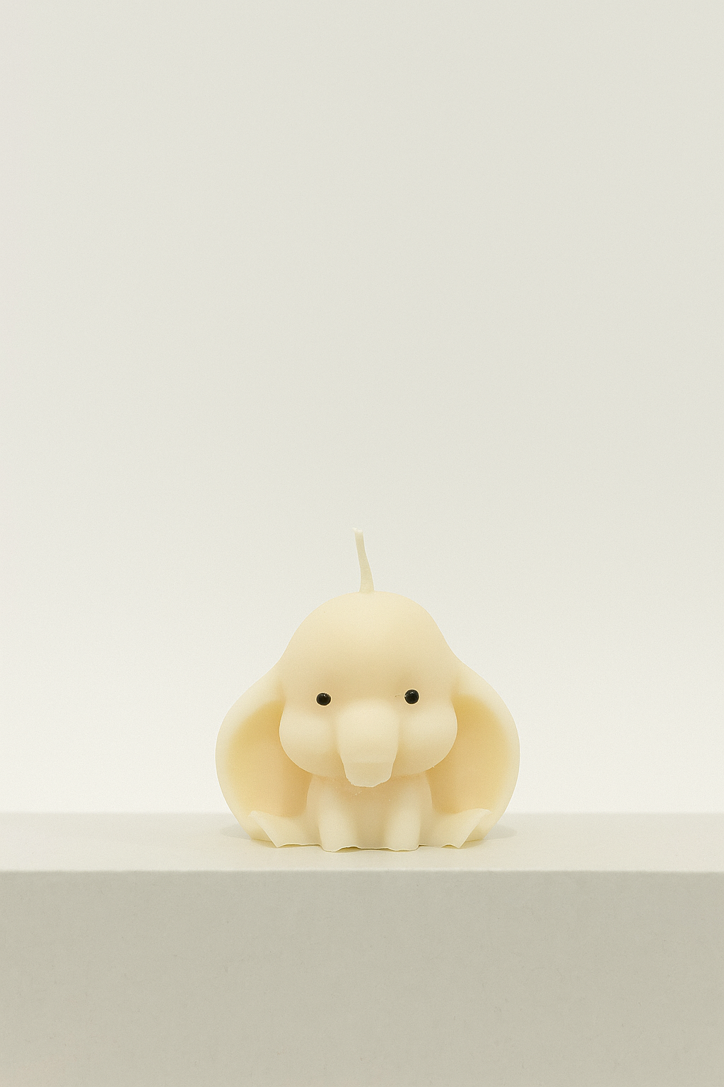 Χειροποίητο κερί σε σχήμα ελεφαντάκι — φτιαγμένο με φυτικά συστατικά για να προσφέρει ζεστασιά και χαμόγελα στο παιδικό δωμάτιο.
